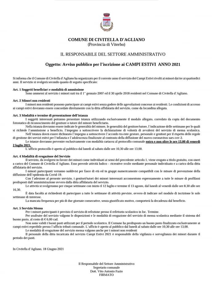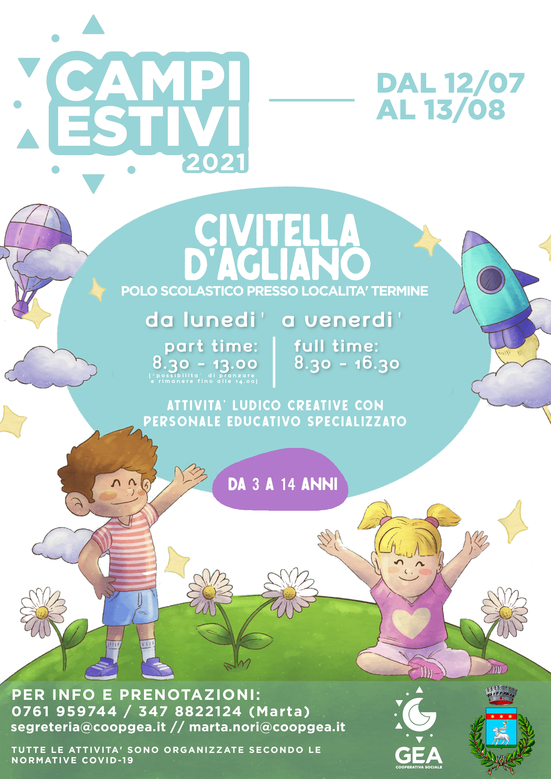 Dal 12/7 al 13/8 al via i Campi Estivi Gea presso il polo scolastico in località Termine.