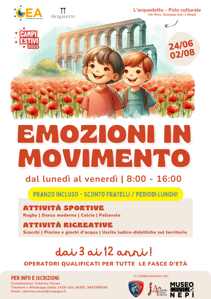 Sono aperte le iscrizioni per il Campo Estivo Emozioni in Movimento di Nepi, nella splendida cornice de L’Acquedotto – Polo Culturale, immersa nella natura e nella storia!